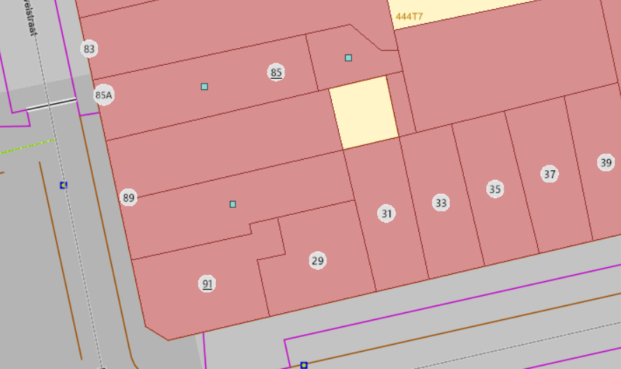 Dit hoekperceel bestaat uit drie aaneengeschakelde gebouwen/huisnummers (87-89-91) die samen een totale bewoonbare oppervlakte van ca. 600 m² beslaan op een grond van ca. 212 m².